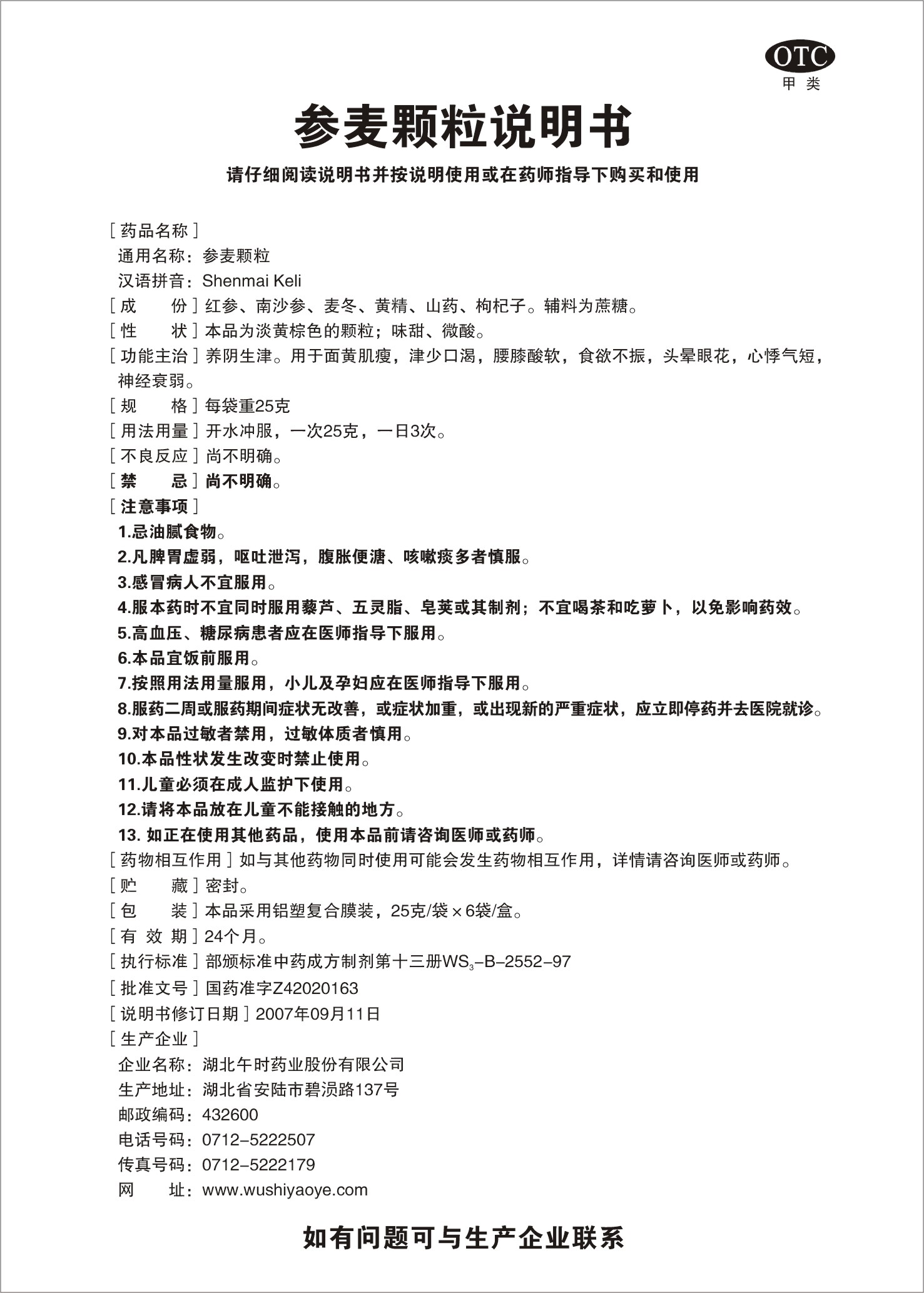 通用名稱:參麥顆粒